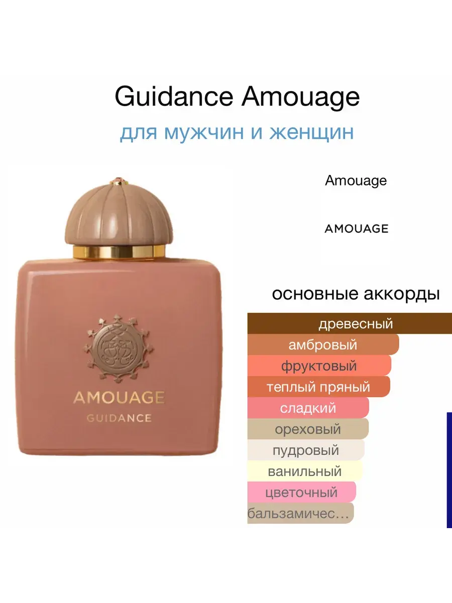 Притягательный цветочный фруктовый эликсир Amouage Guidance – это ароматическая ода прекрасным пейзажам султаната. Башня из слоновой кости утопает в грушевом нектаре и росистом тумане. Он густой, как миндальное молоко. На авансцене – магия душистого ладана. Он представлен в виде сакрального благовония, что дарит спокойствие и умиротворенность. Ладанный аккорд приглашает в сказочную гавань. Тут вас встретит принцесса – и за руку отведет в волшебный сад.